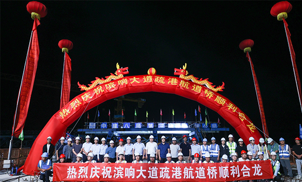 一線傳真|濱響大道北疏港航道橋右幅中跨合龍